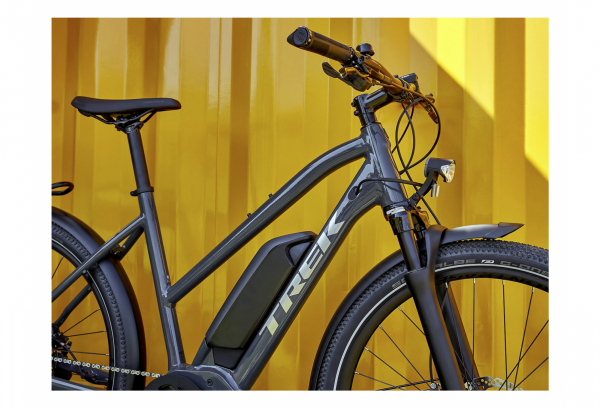 Un cadre en aluminium hydroformé léger au design élancé avec une géométrie Stagger une batterie 500 Wh montée sur le tube diagonal, un puissant moteur Bosch Performance Line CX (250 W, 75 Nm) qui offre une assistance jusqu’à 25 km/h et un dispositif de commande Purion. Ajoutez à cela une fourche suspendue SR Suntour Moby à blocage, une transmission Shimano 9 vitesses, des freins à disque hydrauliques pour une puissance de freinage garantie par tous les temps, un système de feux avant et arrière, des garde-boue, un porte-bagages arrière et des roues de 27,5 pouces rigides avec axes traversants.