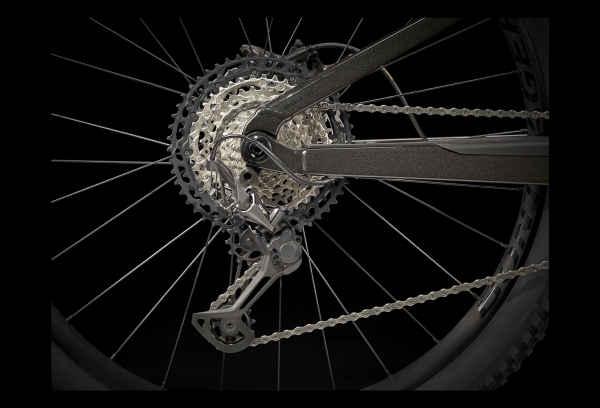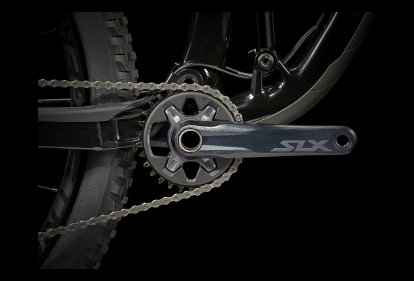 Un cadre alliage d’aluminium, une fourche FOX Rhythm 34 de 140 mm et 130 mm de débattement à l’arrière avec un amortisseur RE:aktiv ultraefficace. Une transmission Shimano XT 1×12 avec un grand pignon de 51 dents pour les côtes, mais aussi une tige de selle télescopique Bontrager Line.